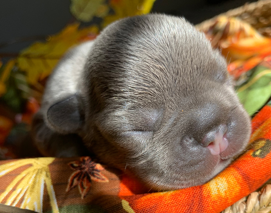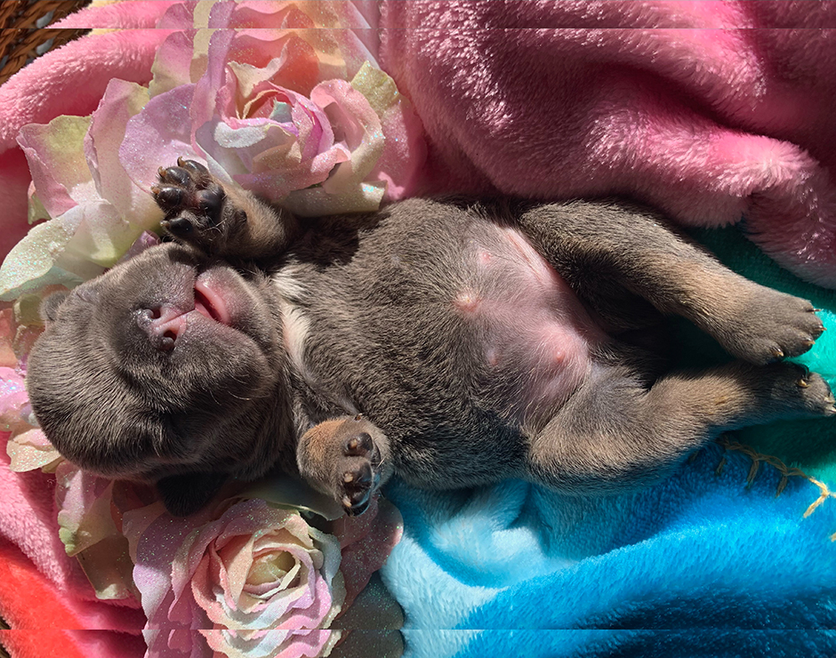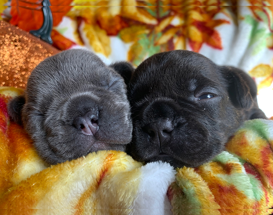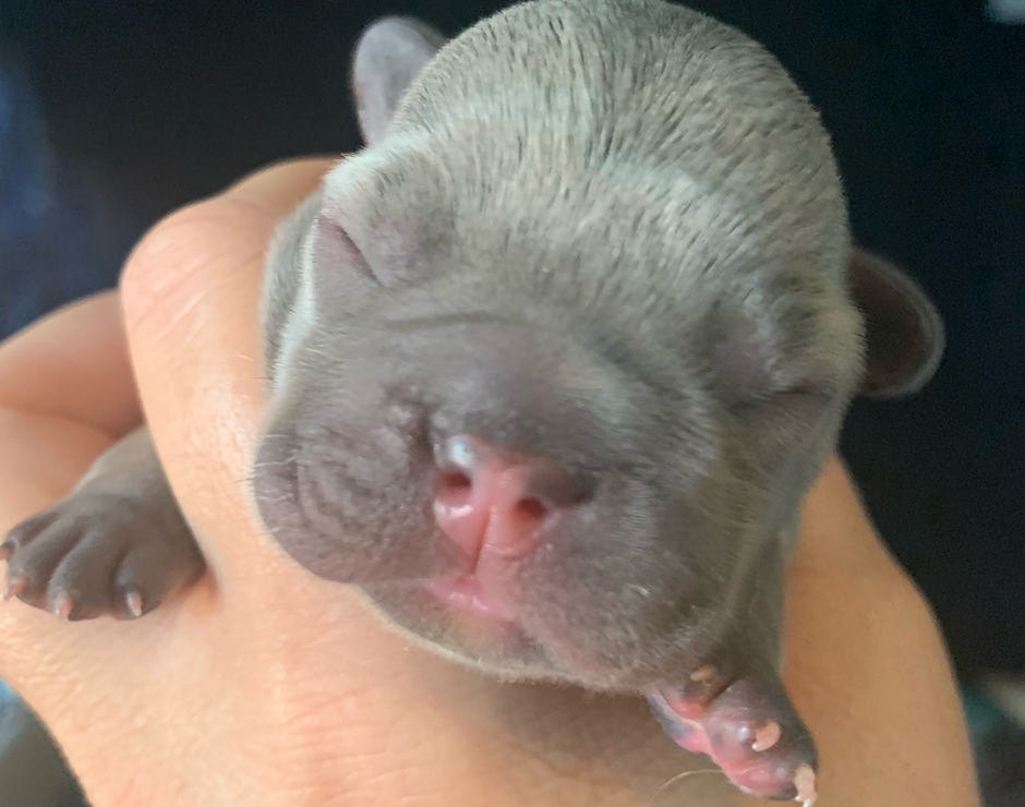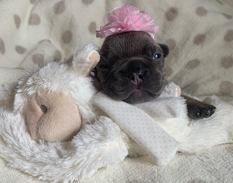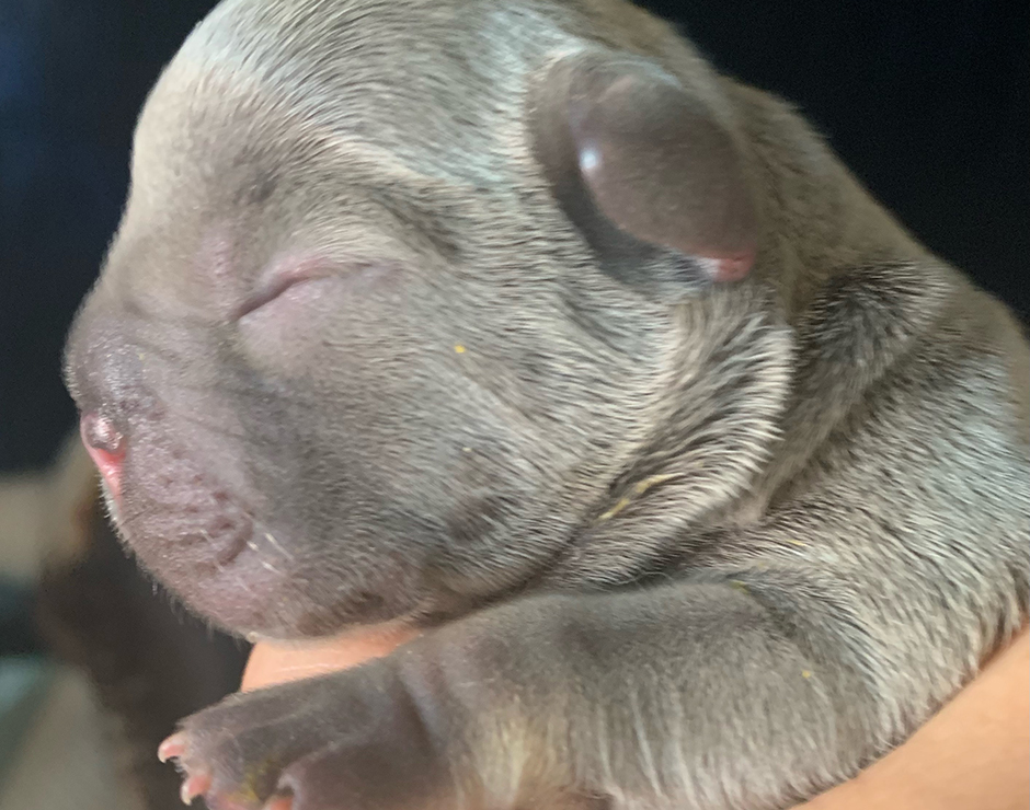 Parents: Godiva is Chocolate Tri and TIKTOK is a stud from Hot Stuff Frenchies; Blue/Tan Tweed Merle, carries chocolate & L4 Fluffy