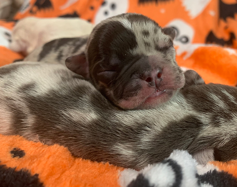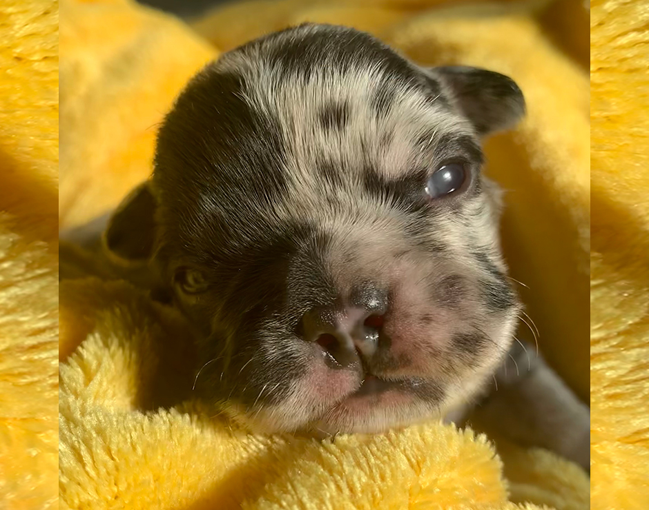 Female French Bulldog Puppy Parents: Godiva and Everest Chocolate Merle DOB: 10/1/23 ADOPTED