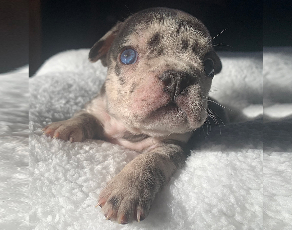 Female French Bulldog Puppy Parents: Godiva and Everest Lilac Merle DOB: 10/1/23 ADOPTED