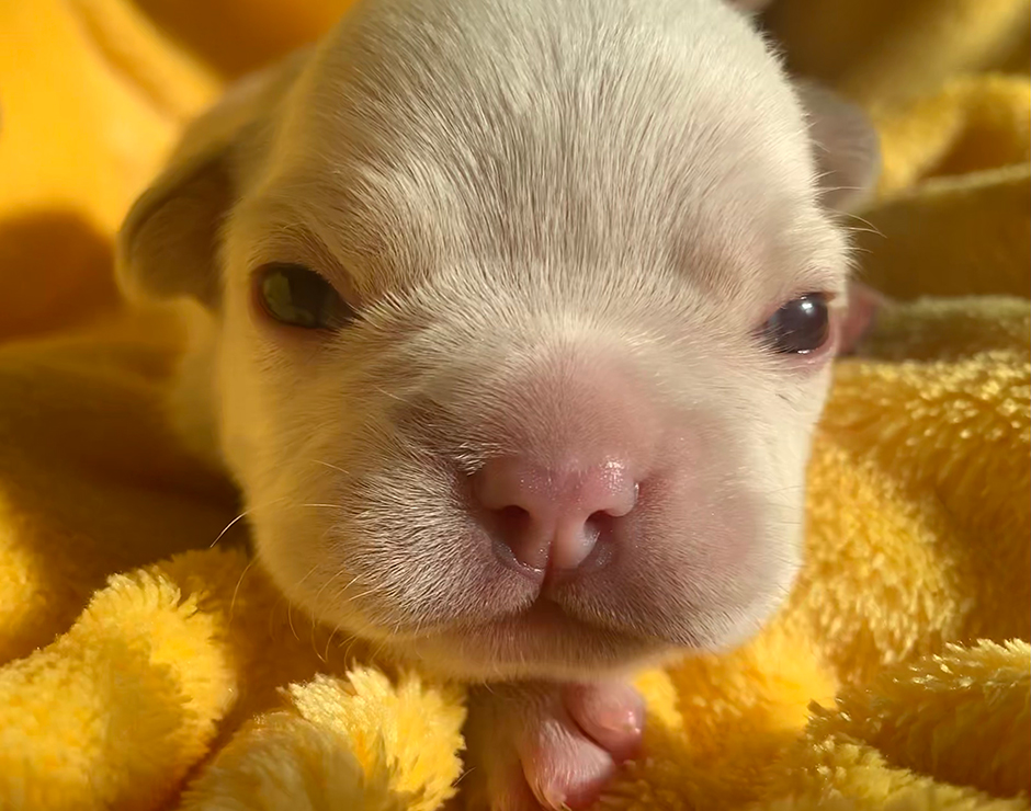 Female French Bulldog Puppy Parents: Godiva and Everest Platinum DOB: 10/1/23 ADOPTED
